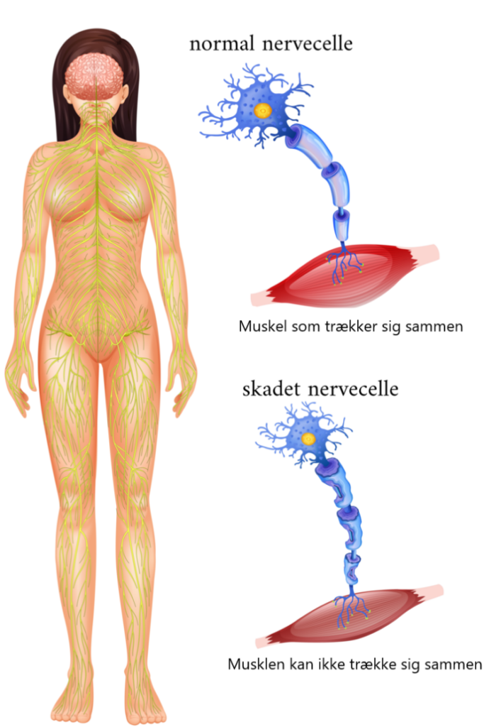 The muscles of the body gradually become smaller and weaker. Over time, there are problems with strength in the arms and legs as well as difficulty swallowing and speaking.