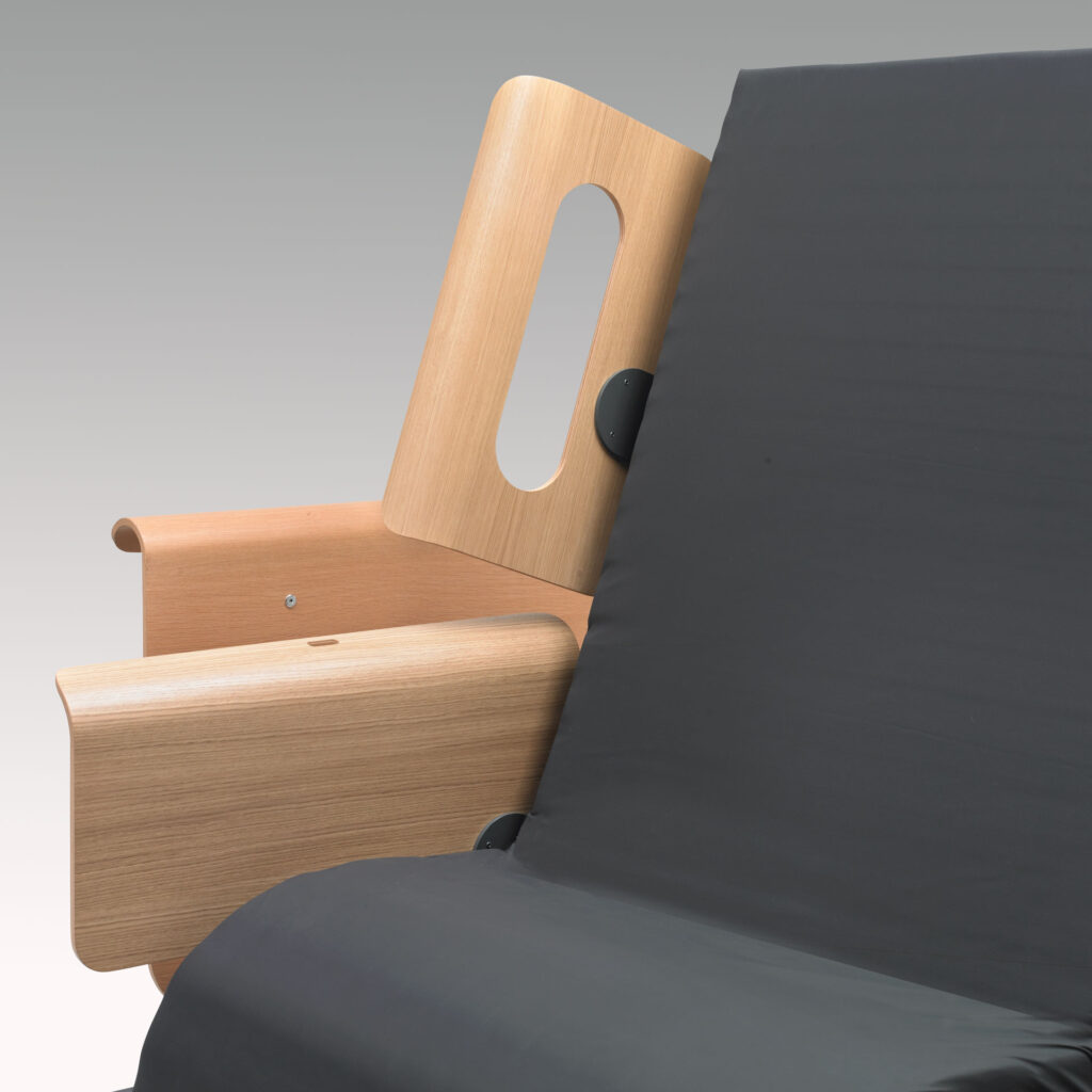 Bedrails at backrest, short model, in oak veneer or stained black.