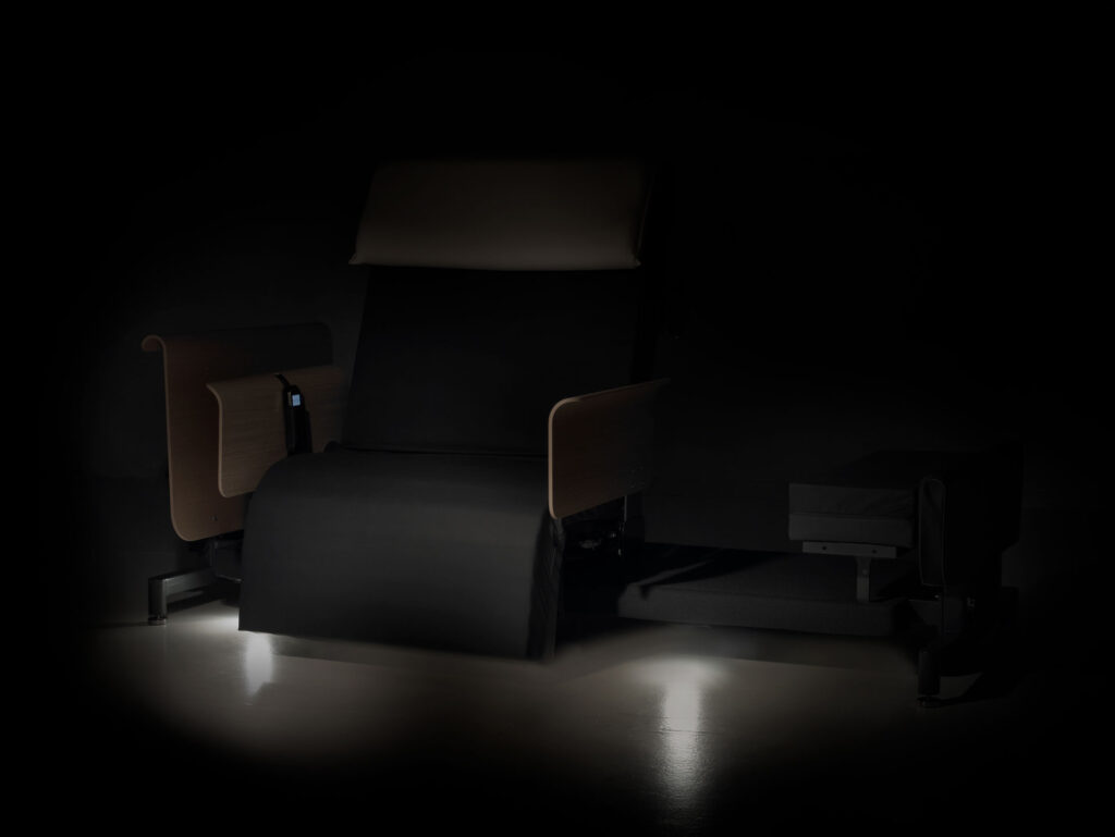 Two soft spotlights will turn on whenever the RotoBed® is rotated towards exit position. When the bed is rotated back, lights will go out. Underbed Light is mounted on the bed.